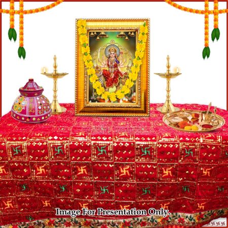 Swastik Puja Velvet Cloth for Temple, Festival, Table & Back Drop Decor