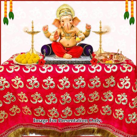 Blissful Om Table Cloth, Divine Om Decor Velvet Red Shawl for God & Goddess