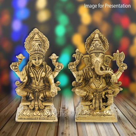 Laxmi Ganesh Seat on Lotus Statue in Brass