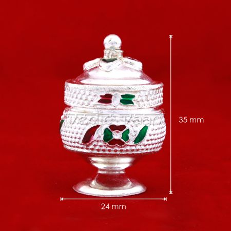 Auspicious Pooja Roli Kumkum Sterling Meenakari Silver Dubbi