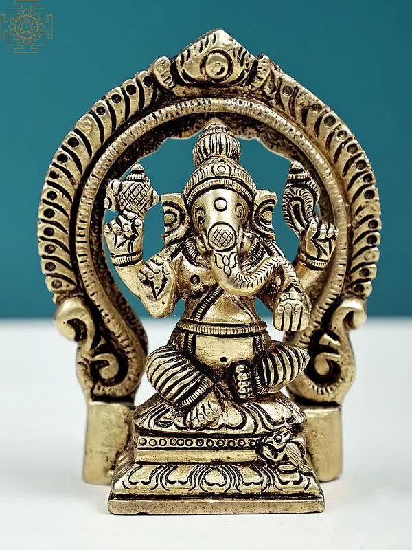 From the Ganesha collection in our Sculptures category, this is 3.5" Chaturbhuja Lord Ganesha Brass Sculpture | Handmade. Item specifications: Brass | 3.50 inch Height X 2.50 inch Width X 1.50 inch Depth | 280 gmSeated within a luminous Prabhamandala, adorned with the graceful Lalitasana pose - Swami Ganapati radiates an aura of wisdom, auspiciousness, and artistic majesty. Each hand holds symbolic objects, s