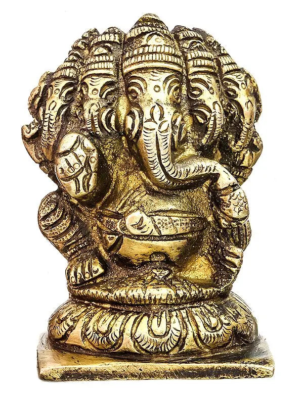 3" Pancha-Mukhi Ganesha Small Statue in Brass | Handmade | Made in India