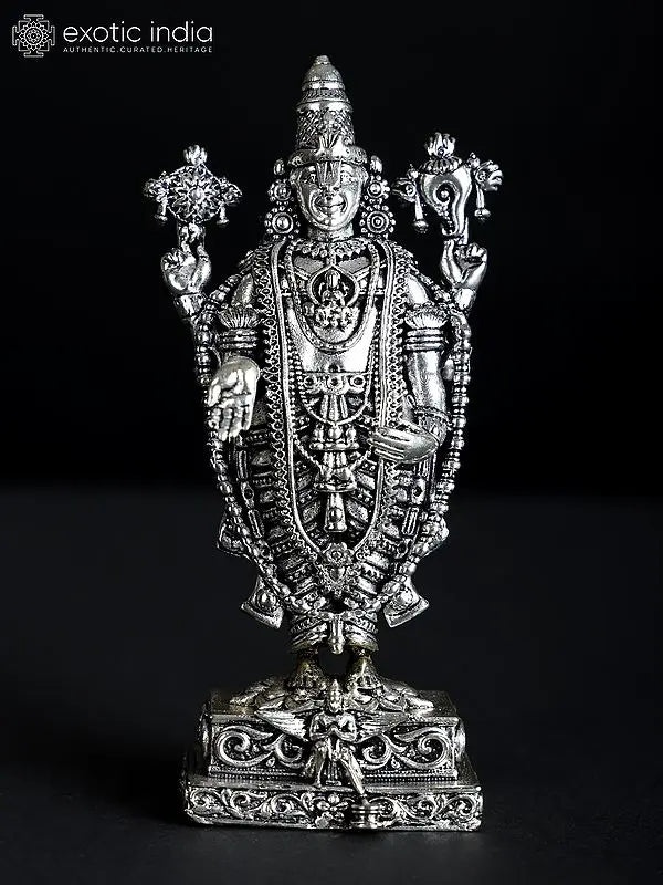 4" Small Lord Tirupati Balaji (Venkateshvara) | Silver Plated Brass Statue