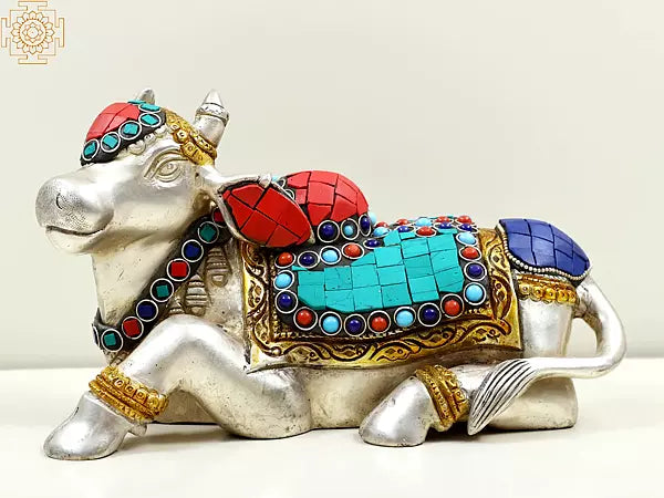 This is 7" Nandi The Mount of Lord Shiva In Brass | Handmade | Made In India from the category Nandi in our Sculptures collection. Details for this item: Brass Statue with Inlay | 4.8 inch Height x 7.2 inch Width X 3.7 inch Depth | 1.88 kgFrom Nandi collection, 7" Nandi The Mount of Lord Shiva In Brass | Handmade | Made In India (Brass Statue with Inlay)