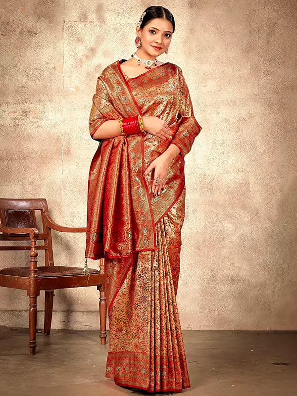 All Over Floral Design Banarasi Silk Saree with Peacock Motifs