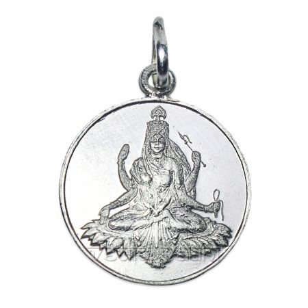 Pure silver Goddess Bhuvaneshwari Devi Yantra Locket Designed as Yantra Image on one side and Goddess BhuvaneshwariDeviImage on other side.