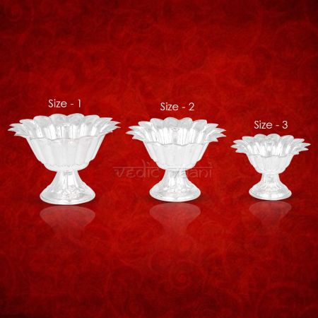 The Devdas Jyoti is ideal for sacrament. Cotton wicks can be placed in the middle of the lamp. The flower is engraved with attractive leaves design in pure sterling silver.