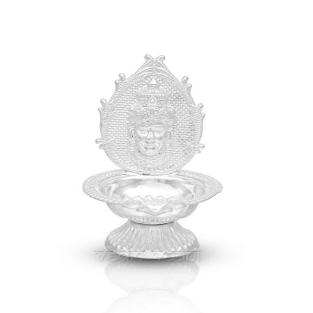 Diya / oil lamp is made with mahalakshmi face design in pure silver. The oil or ghee in the lamp symbolizes our vasanaas or vices and the cotton wick, the ego.