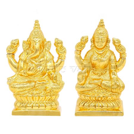 Goddess Lakshmi for Wealth and prosperity in life and lord Ganesha remove obstacles, idols carved in sterling silver with long lasting gold polish.