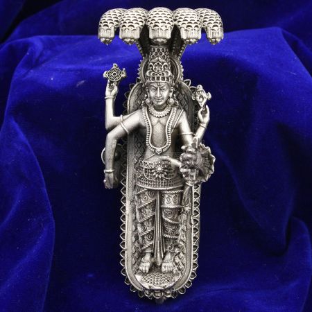 Lord Vishnu Idol (Murti) Sleeping Posture in Pure Silver