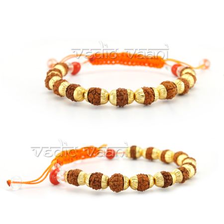 Design: Made of small 5 mukhi from java beads in flower design brass caps with adjustable thread.
