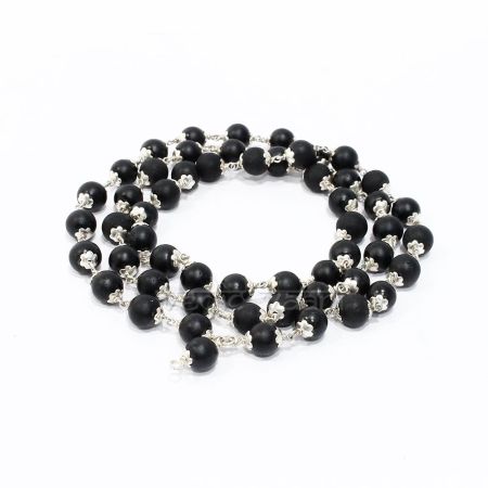 Shaligram Mala (Pendant) Designed with Round Beads of Shaligram and Capped in a Silver. Blesses the wearer by giving Peace of Mind,good Health and Wealth.